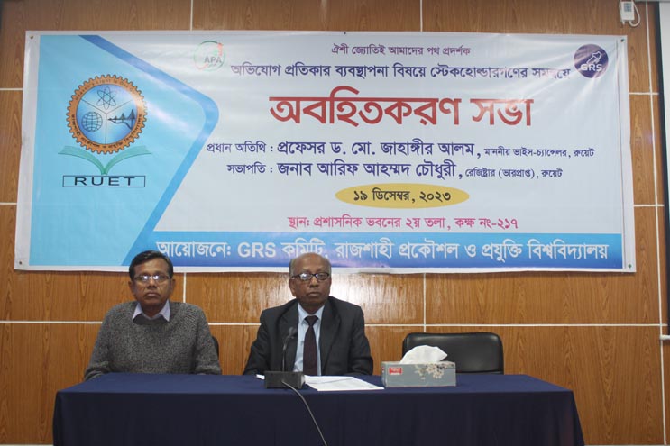 আজ মঙ্গলবার বিকেলে বিশ্ববিদ্যালয়ের হল রুমে অনুষ্ঠিত অভিযোগ প্রতিকার ব্যবস্থা কমিটির (জিআরএস) অবহিতকরণ সভায় প্রধান অতিথির বক্তব্যে উপাচার্য অধ্যাপক ড. মো. জাহাঙ্গীর আলম এই আশাবাদ ব্যক্ত করেন। ভারপ্রাপ্ত রেজিস্ট্রার আরিফ আহম্মদ চৌধুরীর সভাপতিত্বে অনুষ্ঠিত এই অবহিতকরণ সভায় বক্তব্য রাখেন অভিযোগ প্রতিকার ব্যবস্থা কমিটির সমন্বয়ক অধ্যাপক ড. মো. আশরাফুল আলম, ছাত্রকল্যাণ দপ্তরের পরিচালক অধ্যাপক ড. মো. রবিউল আওয়াল, তড়িৎ ও ইলেকট্রনিক কৌশল বিভাগের বিভাগীয় প্রধান অধ্যাপক ড. মো. সেলিম হোসেন।