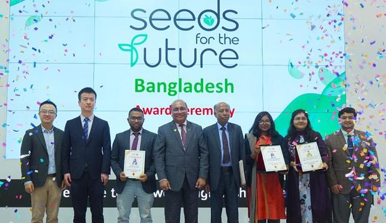 The top ‘seeds’ (winners) have been selected on the basis of performance in exams, project & team work & interviews at ‘Tech4Good’, the global competition round of Seeds for The Future. The top three seeds from this year’s competition are Barisha Chowdhury, Department of CSE, RUET (champion); Subeh Tarek, Department of BTM, IUT (1st runner-up); and Farsia Kawsar Chowdhury, Department of ME, BUET (2nd runner-up). Barisha Chowdhury has been announced as the best team leader as well.